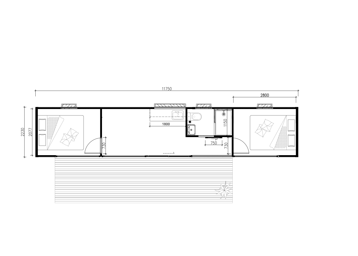 Decks, awnings, baths, hot water, air-conditioning, solar, and furniture are locked in early so the pod arrives configured for your project.
